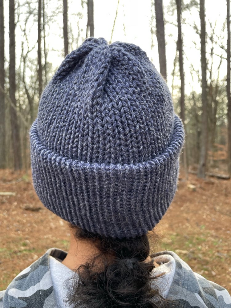This loom knit, hand finished beanie is double layered making it perfect for colder weather. It comes with a removable pompom if you'd like to wash the hat.