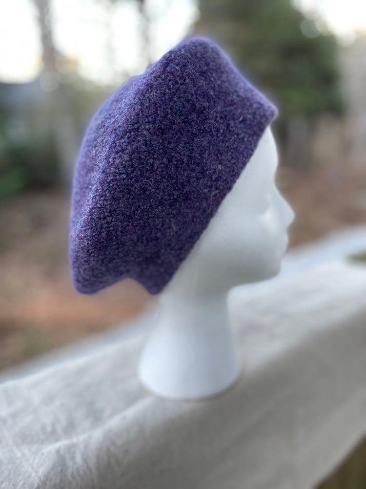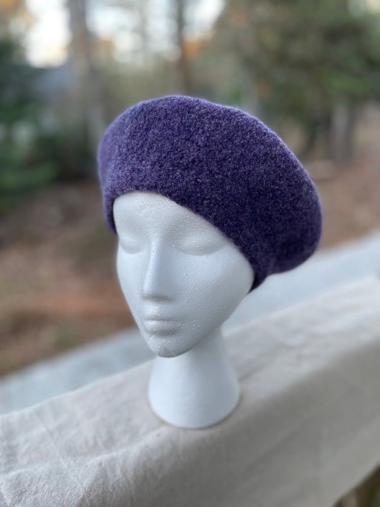 This handcrafted felted beret is made from 100% wool, then felted (or fulled), and molded into its final shape, and dried over a number of days. Each hat is unique and a labor of love. The result is a handmade hat that will last for years to come. Felted wool is thermo-regulating, can repel water and does not contribute microplastics or other toxins to the environment.